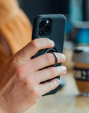 Sæt blot telefonringen/stativet ind i bagsiden af dit Quad Lock-etui eller din universaladapter, indtil du mærker, at den låser.